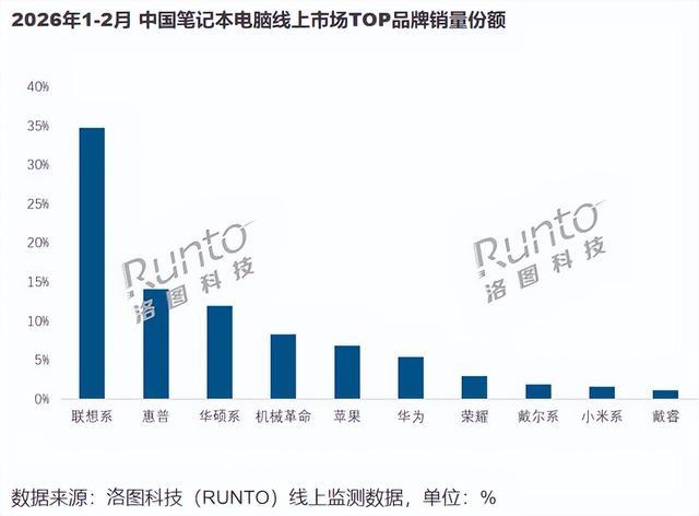 近日,知名机构洛图科技发布了2026年1-2月,中国大陆笔记本电脑线上销售情况。